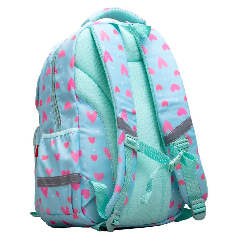 Acest ghiozdan este compartimentat foarte practic, avand un buzunar principal mare, inca 3 secundare prevazute cu fermoare si unul tot secundar cu inchidere scai dar si doua buzunare laterale pentru sticla de apa. Curelele de umar sunt ajustabile si captusite, pentru a oferi un confort si mai mare. Datorita materialului de inalta calitate, acesta poate fi curatat cu usurinta.