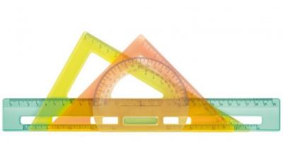 Patrat 90º / 45º / 45º (portocaliu): Cu acest patrat, poti trasa unghiuri precise de 90 si 45 de grade, esentiale pentru desenele tehnice sau proiectele de constructii.