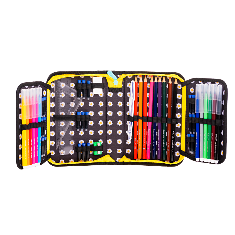 Penarul cu model "Enjoy every moment" de la DACO este un accesoriu frumos si practic, conceput pentru a va ajuta sa va pastrati stiloul, creioanele, markerele si alte obiecte de papetarie organizate. Este prevazut cu un compartiment cu fermoar si doua extensii secundare, oferind o depozitare eficienta a instrumentelor.
