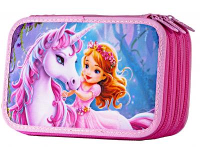 Alege penarul scolar triplu cu unicorn si printesa pentru o organizare eficienta si un plus de culoare in fiecare zi de scoala!