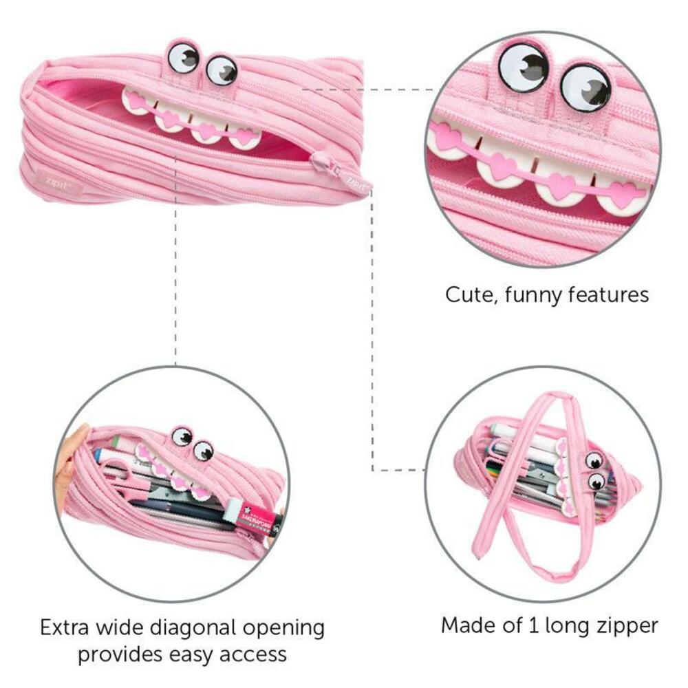 Oferiti-va un motiv in plus pentru a zambi alaturi de penarul cu ochi stralucitori si un ranjet cu fermoar.