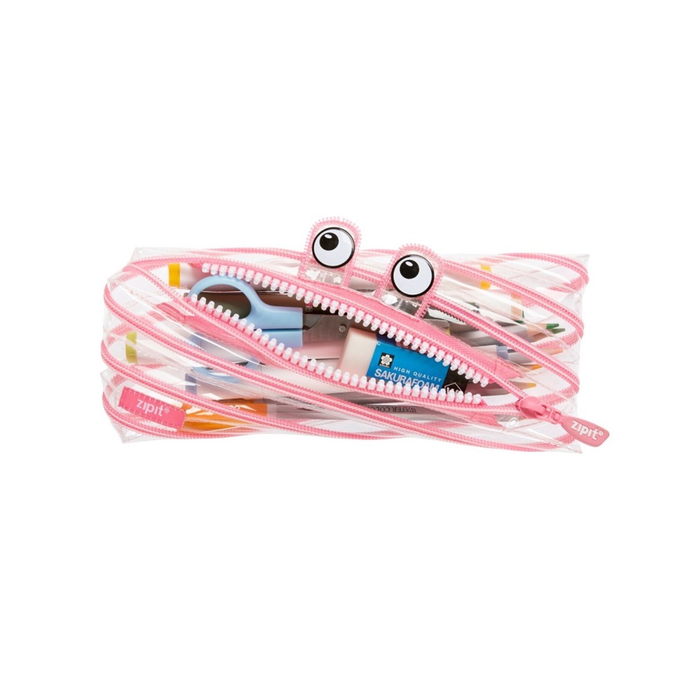 Descriere - Penar cu fermoar, ZIPIT Clear Monster - roz