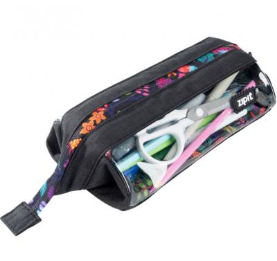 Penar cu fermoar ZIPIT Lenny Clear 2 Sides - Black Floral
