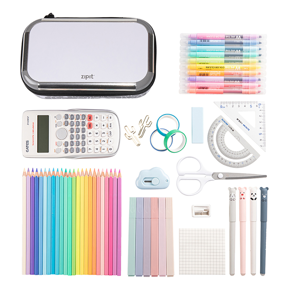 Penar cu fermoar ZIPIT & LOCK Tin - White Board Grey