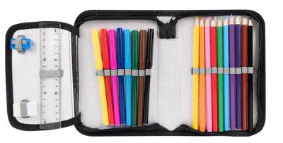 Penar echipat cu 10 creioane colorate, 8 carioci colorate, 1 ascutitoare, o guma de sters si o rigla 19.5x13.5x3.5 cm