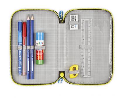 Descriere - Penar echipat cu 3 compartimente Carioca Comics, bleu-galben