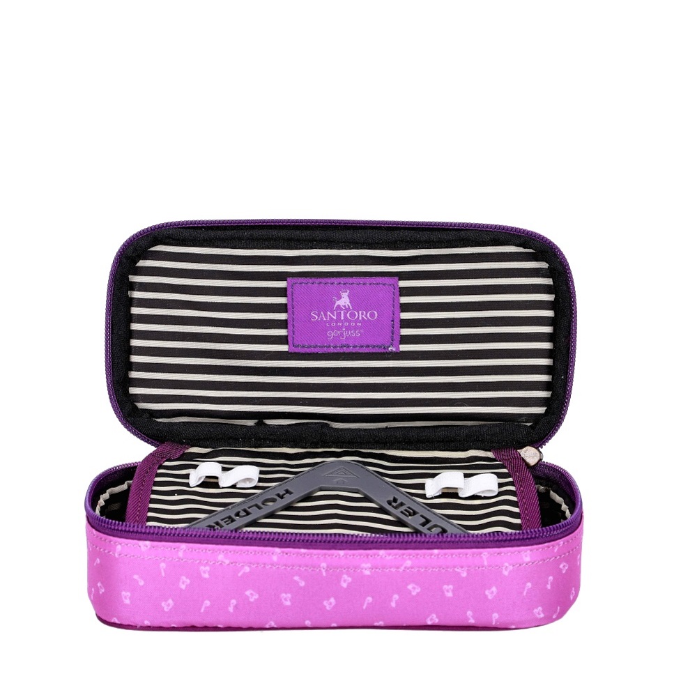 In interior este prevazut cu 12 elastice pentru instrumentele de scris, un buzunar interior si suport pentru rigla.