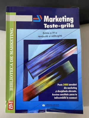 Scopul acestei noi editii este de a pune la dispozitia celor interesati - studenti din invatamantul superior economic de stat si privat, de la cursurile de zi, frecventa redusa si invatamant la distanta, absolventi care pregatesc examenul de licenta, participanti la cursurile postuniversitare, specialisti din economie - un set de teste-grila axate pe principalele probleme ale marketingului.