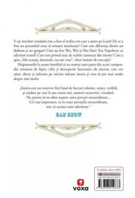 V-ati intrebat vreodata cine a fost al treilea om care a ajuns pe Luna? De ce a fost un porumbel erou al armatei americane? Care este diferenta dintre un dolmen si un gorgan? Cine au fost Wu, Wei si Shu Han? Era Napoleon cu adevarat scund? Care este primul atac de rechin cunoscut din istorie? Cine a spus „Ma scuzati, domnule, nu am vrut“, chiar inainte de executie? Raspunsurile la aceste intrebari si nu numai sunt parte din acest compendiu minunat de fapte, cifre si descoperiri fascinante ale istoriei, care vor uimi, distra si informa pe oricine iubeste istoria si vrea sa stie mai multe despre mai multe.